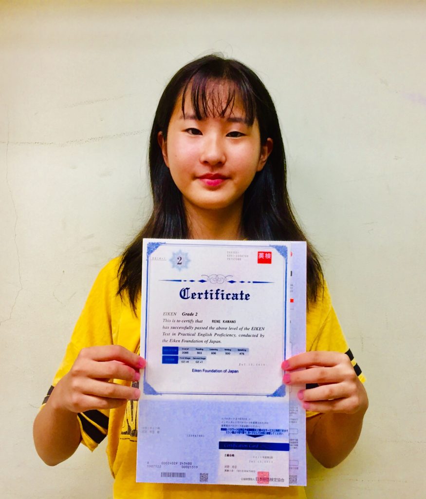 Blog ブログ CATEGORY ALL お知らせコラム合格者たち 2019.07.23 合格者たち 【英検2級合格】中学1年生 中学1年生で英検2級に合格しました。成る木塾に入塾してから1回目の試験での合格です。 個人個人に合わせた学習計画で、とても効率良く合格出来ました。 次は中学卒業までに準1級を取りたいです。 英検取るなら成る木塾
