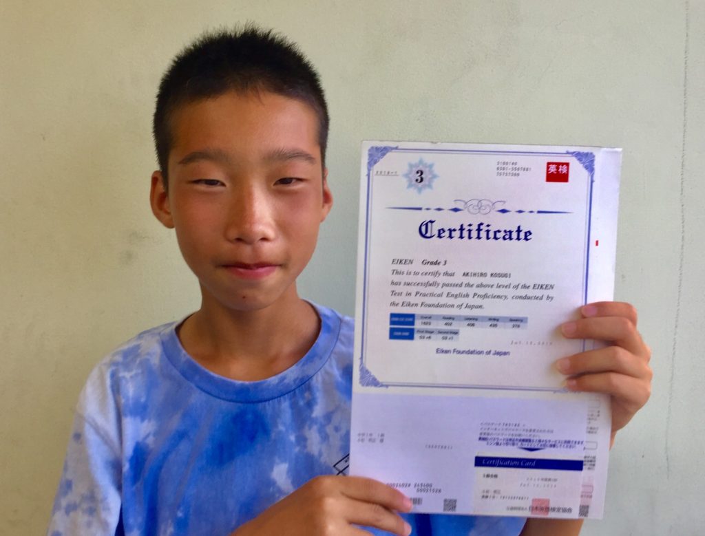 2019.08.01 合格者たち 【英検3級合格】中学3年サッカー少年 3度目の3級チャレンジを成る木塾で突破 忙しい学校生活とサッカー部の厳しいトレーニングの合間に宿題を済ませて、効率良く合格を成し遂げました。 次はこのまま準2級突破を目指します。 英検取るなら成る木塾