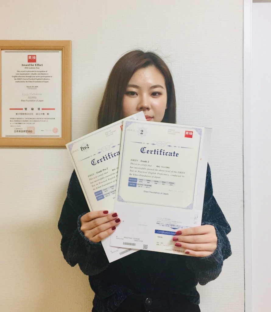2019.11.28 合格者たち 【英検準2級・2級合格】高校3年生 大学受験の為に、何としても2級合格が必要でした。念の為に準2級も受験、成る木塾に通って1回目の試験で準2級・2級共に合格、明るい大学生活が楽しみです。 英検取るなら成る木塾