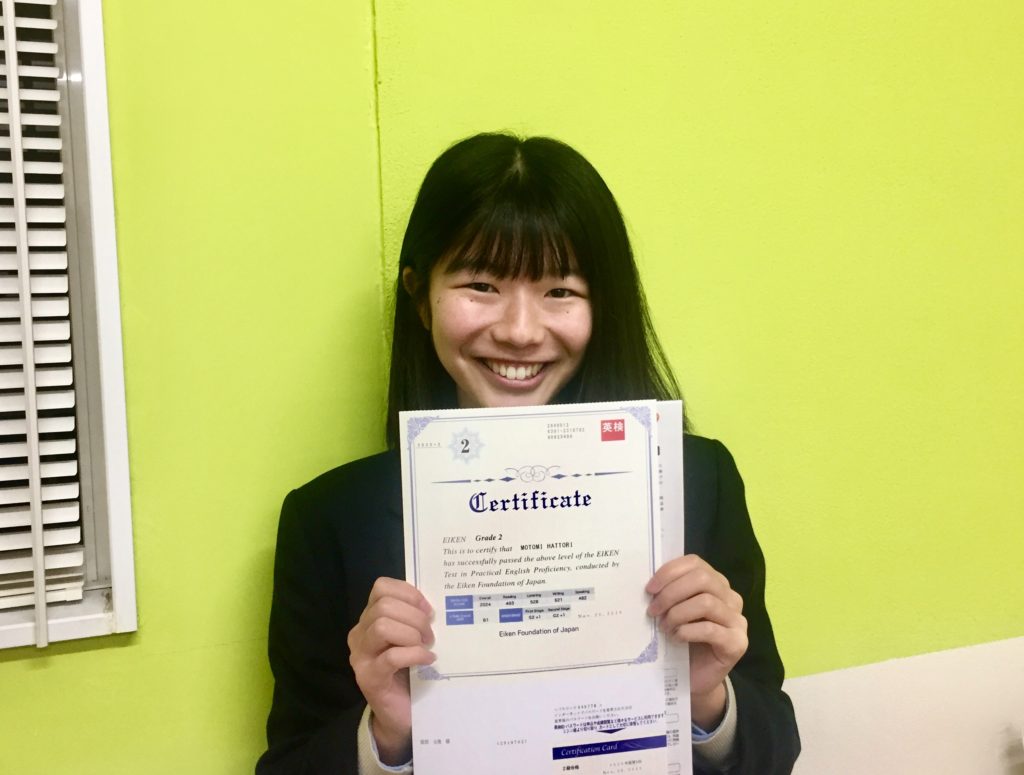 2020.12.08 合格者たち 【英検2級合格】高校3年生 キュートな笑顔で全てを乗り切る高校3年生 しかし英検2級二次試験では、そのキュートな笑顔でも一発合格には及ばず、2度目での二次試験チャレンジでの合格となりました。 英検取るなら成る木塾