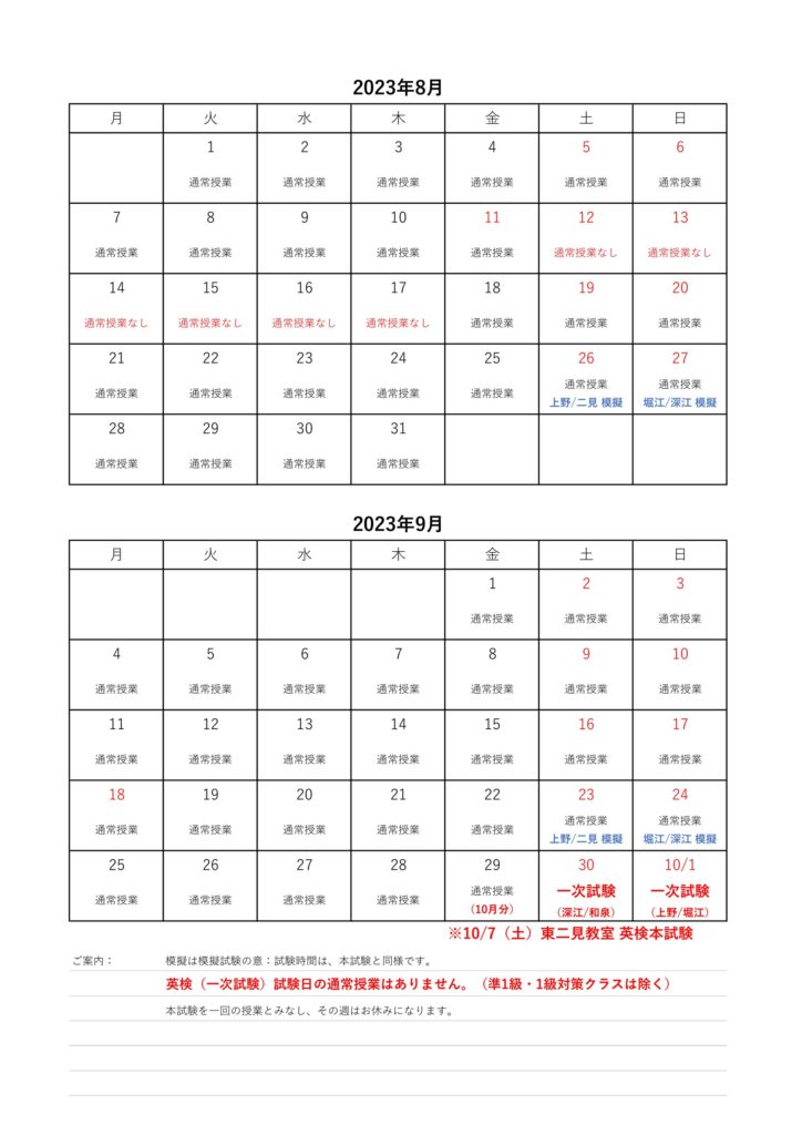 Blog ブログ CATEGORY ALL お知らせコラム合格者たち 2023.05.16 お知らせ 【カレンダー】2023年度第2回英検に向けて 2023年度第2回英検に向けてのカレンダーをご案内させて頂きます。 英検取るなら成る木塾