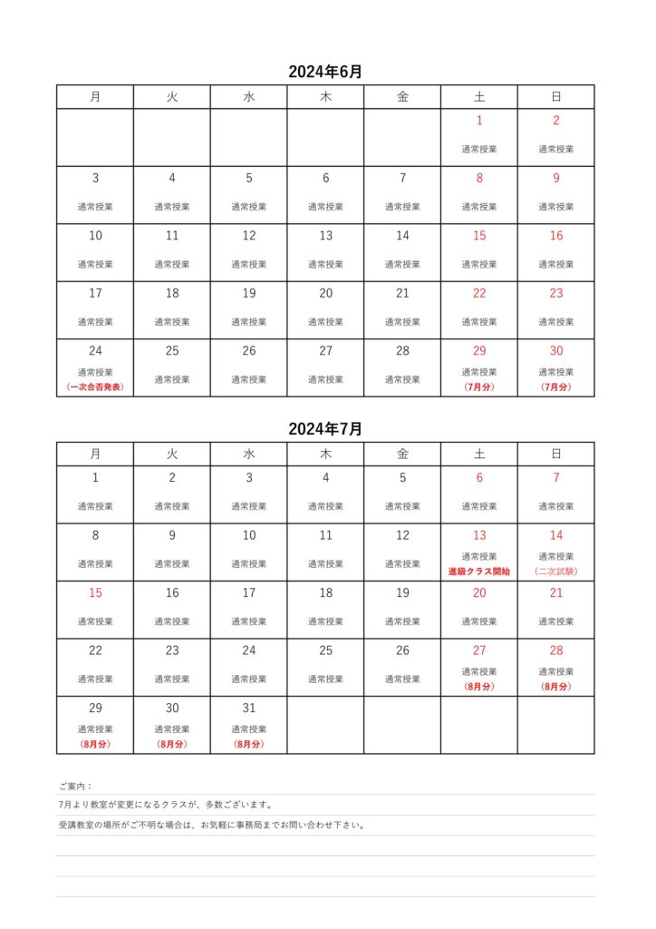 2024年度第2回英検に向けてのカレンダーをご案内させて頂きます。